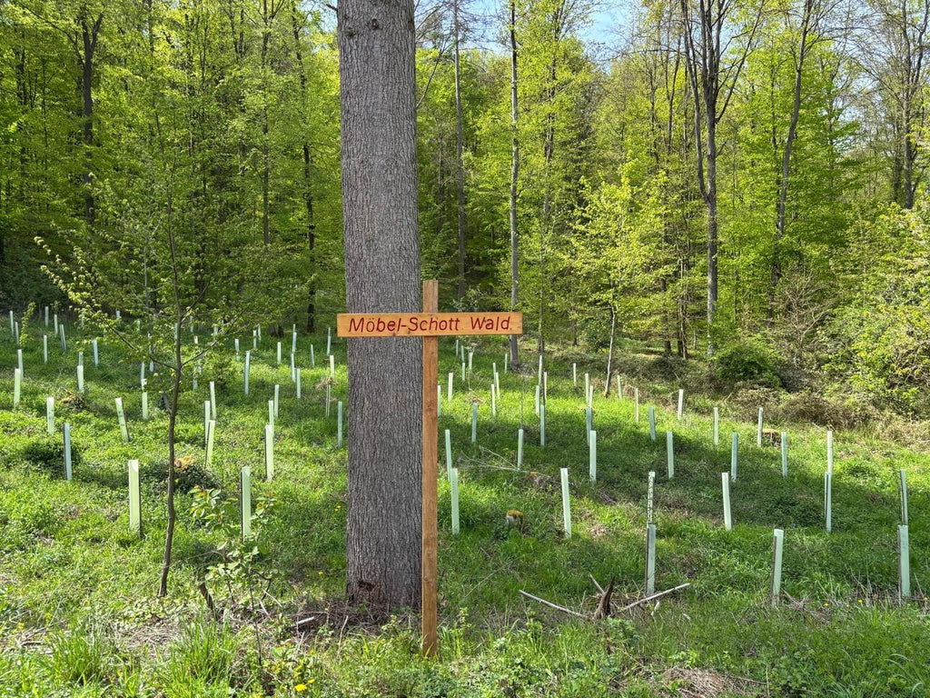 Hierbei handelt es sich um ein Projekt unseres Familienbetriebs, der MÖBEL SCHOTT GmbH. Auf einem der Gemeinde Großrinderfeld zugehörigen Waldgebiet werden in unserem, bzw. im Namen unserer Kunden, Bäume angepflanzt um den Erhalt des Waldes zu unterstützen und der Holz-Knappheit langfristig entgegenzuwirken.